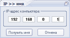 Также для ввода имени можно использовать специальную форму перевода IP-адреса в имя. В ней необходимо указать требуемый IP-адрес, затем нажать кнопку "Получить имя". Если требуемый адрес будет найден, то в поле ввода имени будет добавлено имя найденного компьютера.